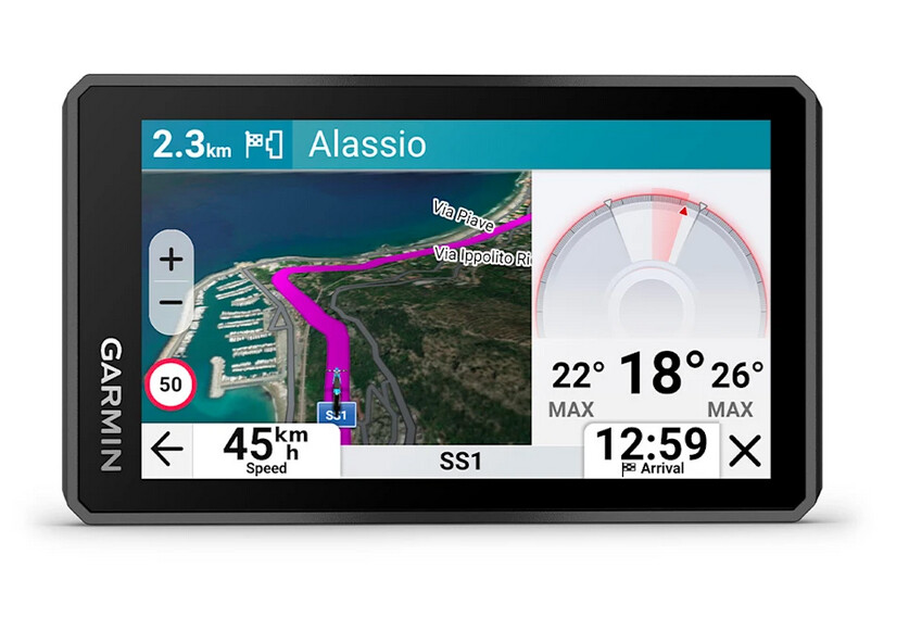 Downloadbare Satellitenbilder liefern dir eine realistische Vogelperspektive, während Garmin Adventurous Routing™ besonders kurvenreiche und abwechslungsreiche Strecken findet. Zusätzlich zeigen dir beliebte Motorradstrecken die meistbefahrenen Routen direkt auf der Karte.