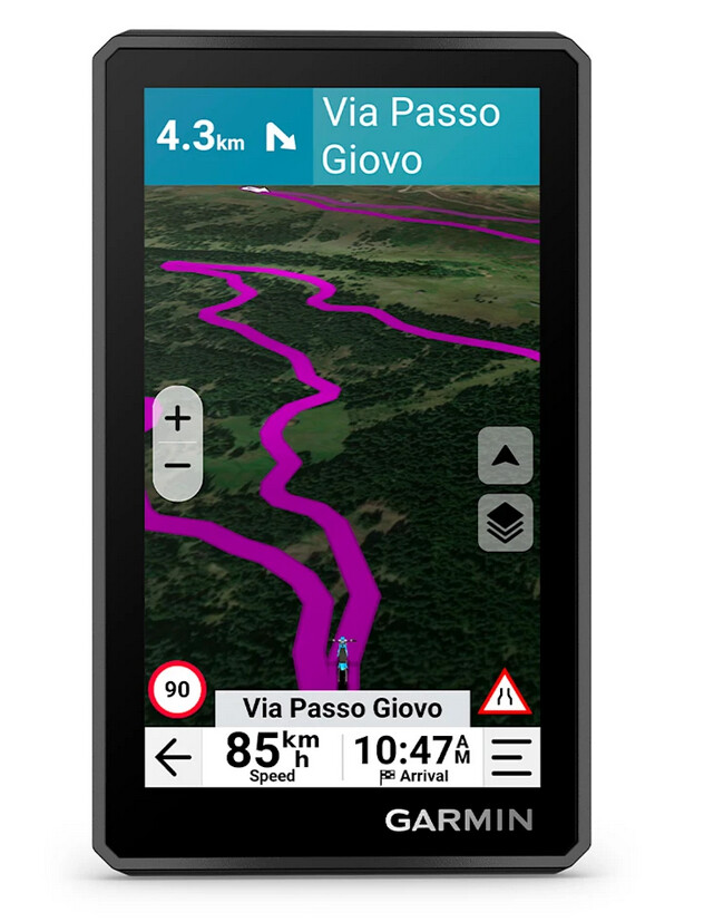 Downloadbare Satellitenbilder liefern dir eine realistische Vogelperspektive. Mit Garmin Adventurous Routing™ findest du besonders kurvenreiche und landschaftlich reizvolle Strecken, während dir beliebte Motorradstrecken direkt auf der Karte angezeigt werden.